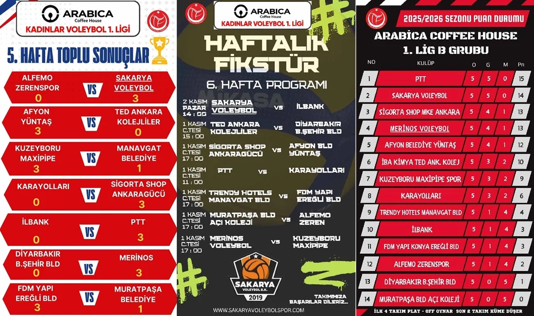 Sakarya Voleybol Fırtınası Dinmiyor 2025-2026 Arabica Coffee House Kadınlar 1. Ligi B Grubu’nun