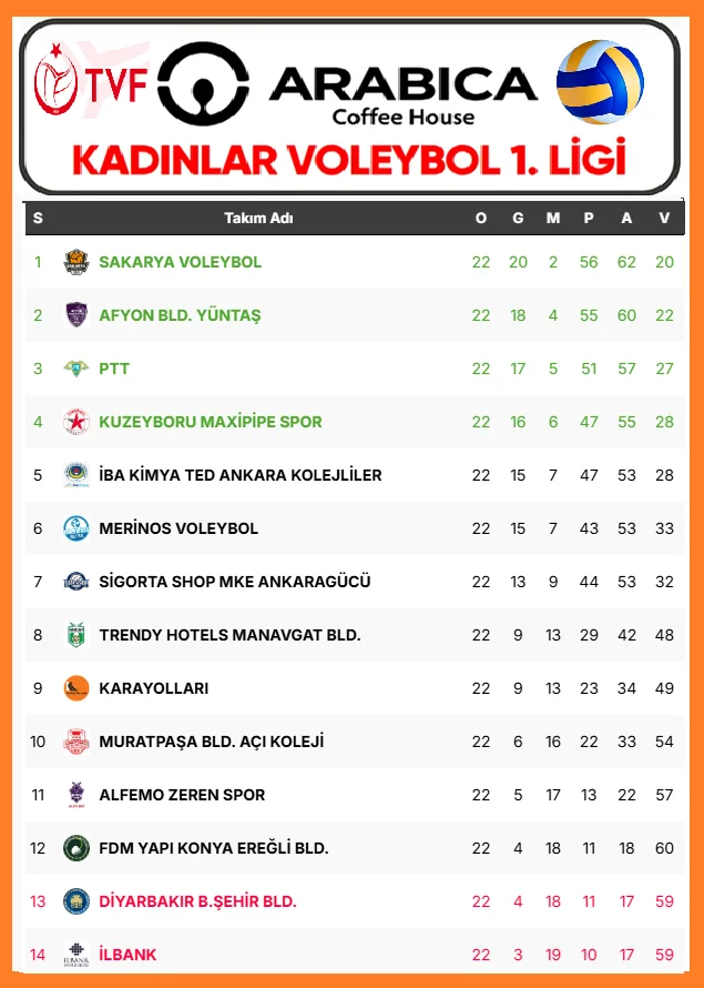 Namağlup Lider Sakarya Voleybol Farkı Açtı Arabica Coffee House Kadınlar 1. Ligi B Grubu’nun namağlup