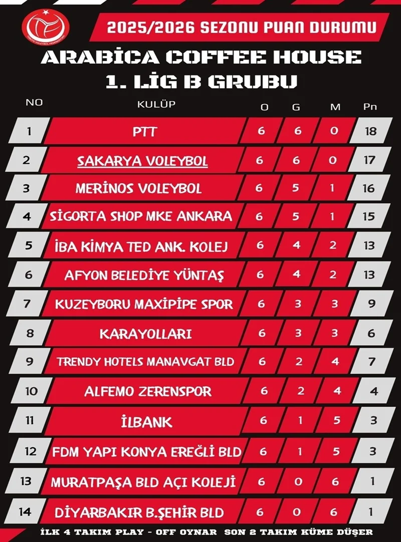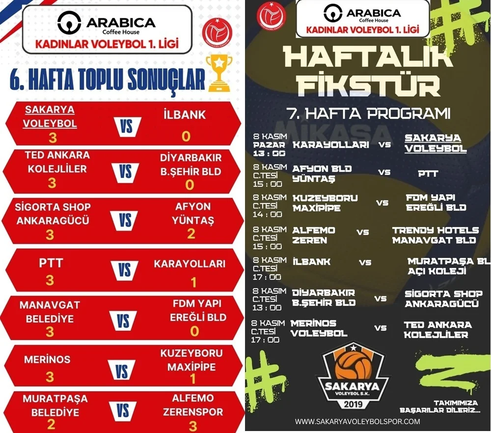 Arabica Coffee House Kadınlar 1. Ligi B Grubu’nun 6. haftasında Sakarya Voleybol, kendi sahasında