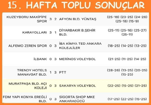 Toplu Sonuçlar Haftanın Programı Puan Durumu