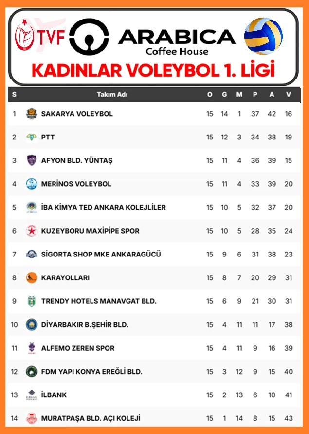 Namağlup Lider Sakarya Voleybol Farkı Açtı Arabica Coffee House Kadınlar 1. Ligi B Grubu’nun namağlup