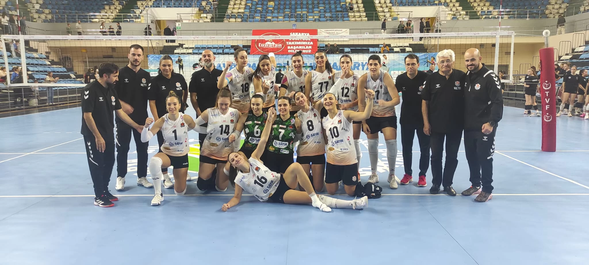 Maçı izlemeye gelenler arasında Sakarya Valisi Rahmi Doğan, Sakarya Gençlik ve Spor İl Müdürü Nevzat İnanç gibi şehrin önde gelen isimleri de bulunurken, Başkan Ömer Bektaş’ın da tribünde yer aldığı bu galibiyet, şehirde büyük bir heyecan yarattı. Maç boyunca takımına desteğini esirgemeyen Sakaryalı sporseverler, galibiyetin ardından sevinç gösterileriyle salona adeta bayram havası kattı. Sakarya Valisi Doğan maç sonunda “Kızlarımızı yürekten tebrik ediyor, başarılarının devamını diliyoruz!”
