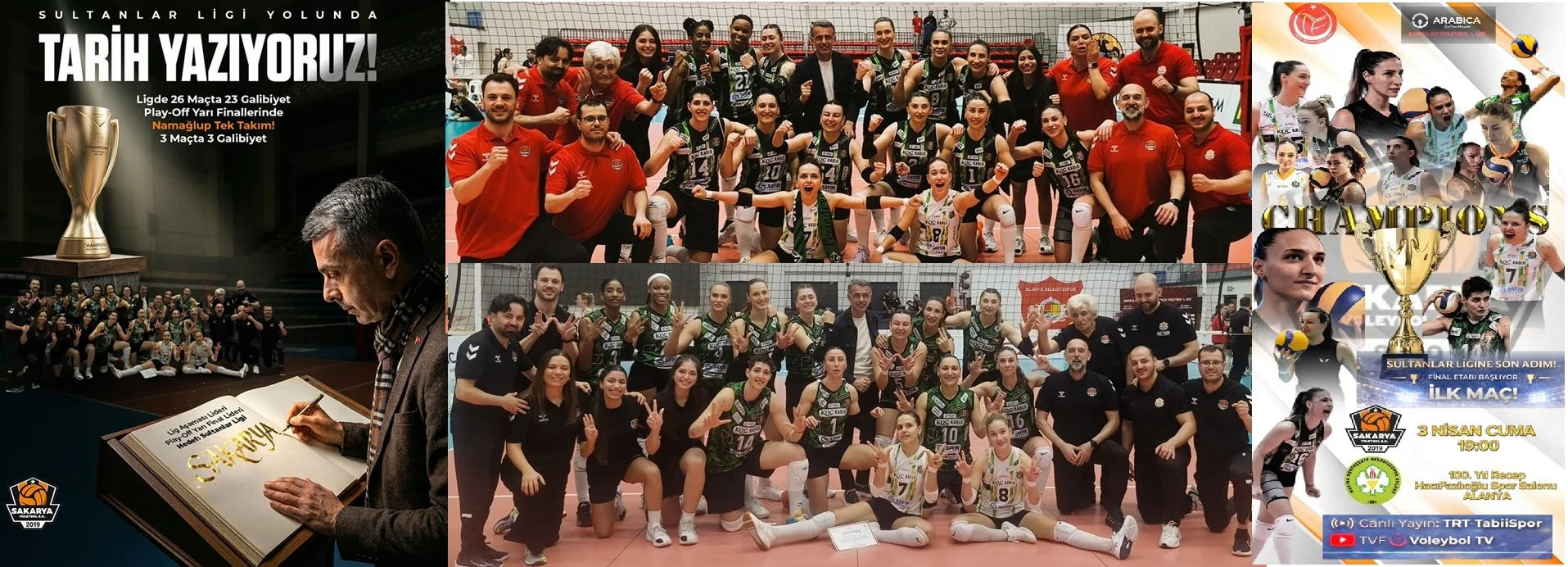 3 Nisan Cuma günü saat 19:00’da Alanya 100. Yıl Recep Hacıfazlıoğlu Spor Salonu’nda oynanacak bu dev randevu, Sakarya’nın voleybol tarihindeki altın sayfası oldu ve yeniden başka bir tarih yazmaya aday. Teknik heyet ve oyuncuların moralinin en üst seviyede olduğu gözlemlenirken, temsilcimizin sahadan galibiyetle ayrılarak finale avantajlı bir başlangıç yapması bekleniyor.